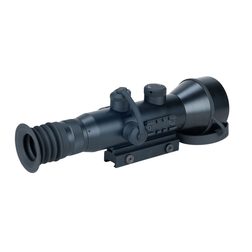 RMRS80-2 adopts high-performance Image Intensifier Tube Generation 2+, power supply with built-in bright flash protection (with automatic brightness gain regular) which significantly improves observation definition and extend your distance up to 250-350m.As long as the luminance is up to 0.001 Lux, you can engage in sniper war in the wild at night. Furthermore, this scope has the function of anti-glare, it can be auto off when it aims at the intense light suddenly and fits for city battle. It also matched with infrared equipment for compensating the brightness, which makes the military conflict possible at different condition. Besides, it provides for international common standard Picatinny rail, and it can be used for G3 style 7.62mm and G2 style 5.8mm sniper rifle respectively with mount rail systems.